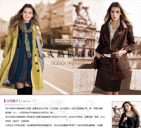 網站建設公司,做網站優化關鍵詞排名SEO,營銷型,手機網站建設,響應式,品牌型,電商/門戶,外貿型網站建設. 深圳市卓依爾服裝有限公司是歐洲女裝品牌ER.Z在中國大陸地歐的獨家總代理。公司有十余年的品牌運營管理經驗,本著穩步發展、聯系合員工、聯合加盟商、聯合供應商,贏得消費者擁戴的共贏理念,已在全國初步建立起連鎖專賣網絡。