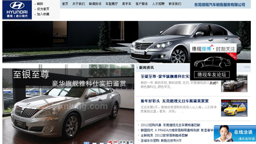 東莞德現(xiàn)汽車銷售服務(wù)有限公司成立于2006年12月,是經(jīng)工商局批準的小轎車經(jīng)營單位,是專門從事現(xiàn)代品牌進口高檔跑車、轎車、越野SUV整車銷售,汽車維修,配件供應(yīng)及售后服務(wù)為一體的汽車銷售服務(wù)中心。 東莞德現(xiàn)汽車銷售服務(wù)有限公司位于寮步國際汽車城內(nèi),上海大眾斯柯達旁。公司主銷車型有:超豪華行政座駕雅科仕、高級豪華轎車勞恩斯、城市越野SUV維拉克斯和熱賣的新勝達、城市酷炫轎跑勞恩斯-酷派、現(xiàn)代高端多用商務(wù)車H-1輝翼、全新《流體雕塑》設(shè)計風格的全新雅尊 、大膽的三門設(shè)計,勁酷的混血新生代-飛思Veloster等。