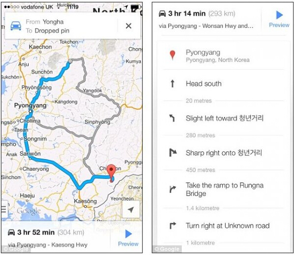 許多人認為導航是這個時代理所當然的東西,但其實在那些對網絡嚴格管制的地方,例如朝鮮,導航是一種奢侈品。此前,谷歌地圖的路線、鐵路、公園等信息都設法繞過了這些封閉區域。而現在,谷歌增加了在朝鮮的衛星導航數據。