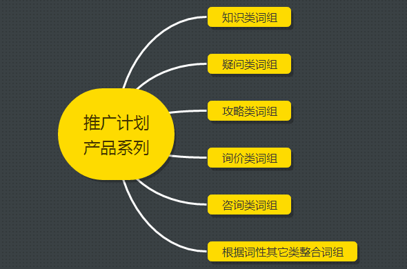 如上圖,針對(duì)一個(gè)具體的產(chǎn)品小編劃分了知識(shí)類詞組、疑問(wèn)類詞組、攻略類詞組、詢價(jià)類詞組、咨詢類詞組以及其他類型的詞組,其實(shí)不管如何劃分,只要是想做到精細(xì)化運(yùn)作的用戶均需要根據(jù)詞性有針對(duì)性的構(gòu)建關(guān)鍵詞組,因?yàn)橐粋€(gè)推廣組里的關(guān)鍵詞整合了一類用戶的核心訴求,推廣組建好之后,后期的創(chuàng)意描述、落地頁(yè)面的選擇都會(huì)圍繞著用戶的真實(shí)需求進(jìn)行設(shè)定,以保證用戶點(diǎn)擊進(jìn)去之后能夠最大化的滿足用戶需求,促進(jìn)轉(zhuǎn)化。